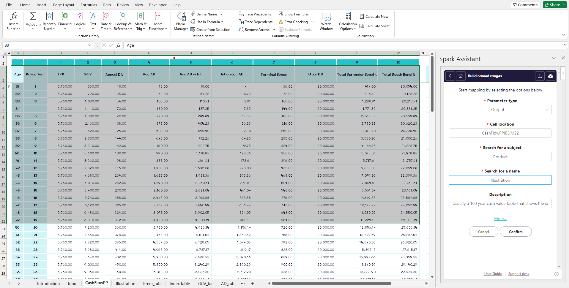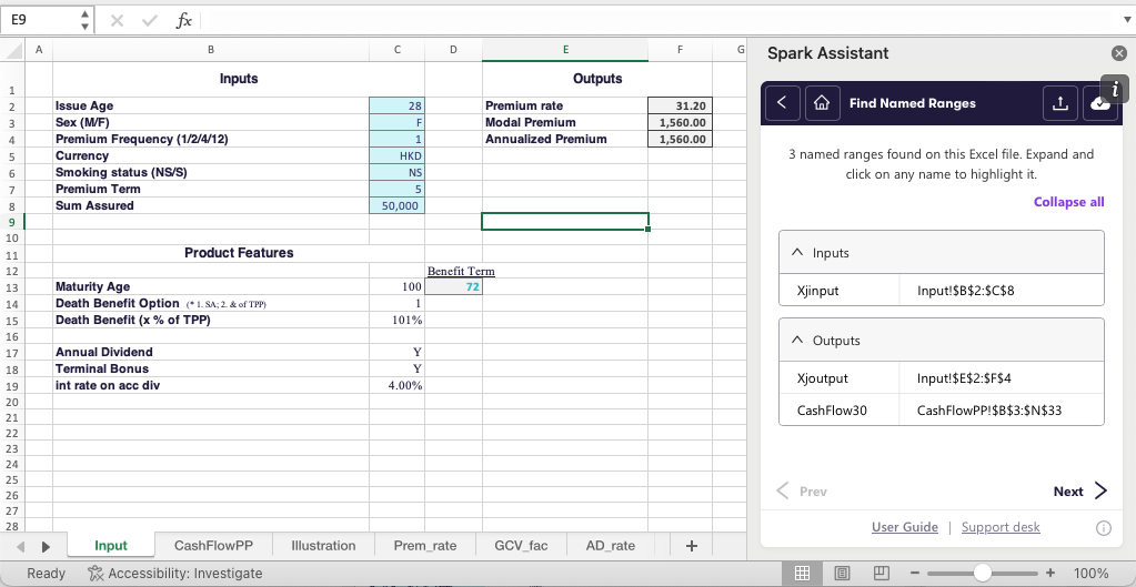 Build mode helps users manage named ranges for Spark. Since named ranges are supposed to follow a specific syntax, Build mode facilitates the mapping of inputs and outputs while minimizing mistakes and confusion.